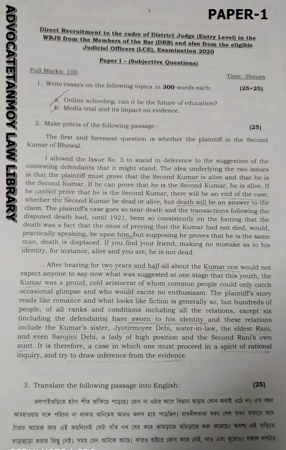 West Bengal Higher Judicial Service- English Paper-2020 (Main)